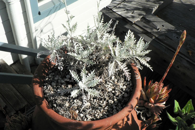 June 14, 2007: One of the first plants purchased from Long's in 2005 for the new roof garden. It didn't do so well this winter. Much of the lower foliage died, and the plant, while surviving, is much thinner.