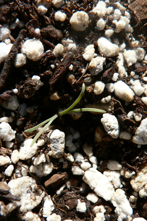 April 29, 2005: The very first sprouts from a packet of Icelandic poppy seeds planted in the ground at 5582 Taft Avenue. After a couple of weeks of me staring at the ground each morning searching for signs of life, they finally started to come up! (If I'd known we would be evicted a month later, I would have planted them in pots.)